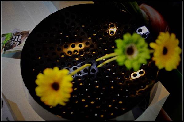 這是有很多洞的盤子,可以拿來插花、插筆、插隨意,但就是不能裝水~